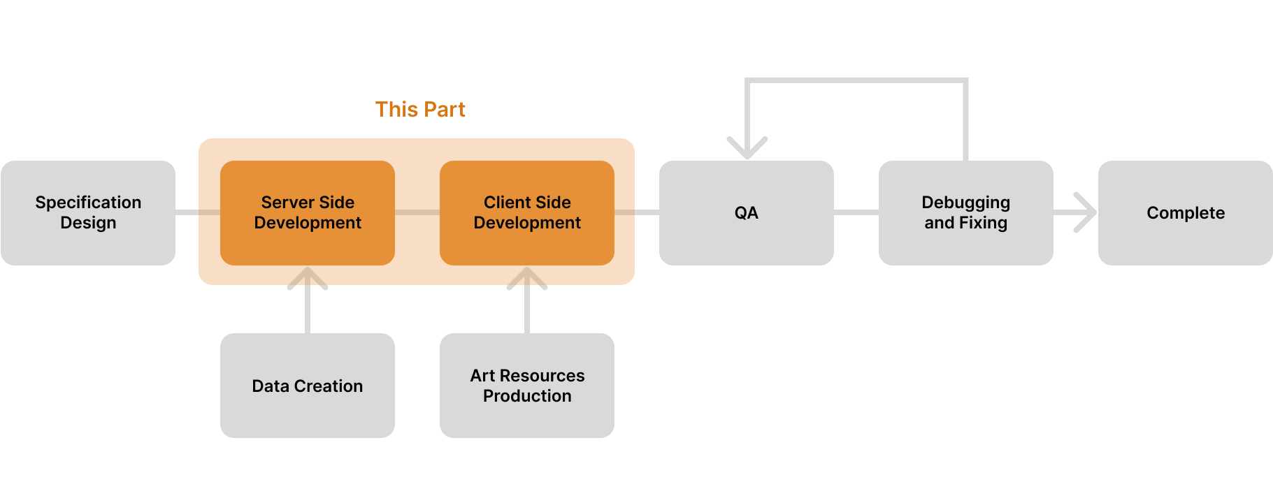 First, we will explain the progress of "server-side development" and "Client-side development" in the orange