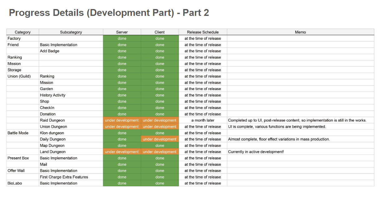 Many of the items of Part1 and Part2 have been mostly developed, but there are still items in the end contents area that are still under development. The raid dungeon, which is difficult and requires a well-raised master DOLL, is still under development, and we hope to implement and release it one month after release.