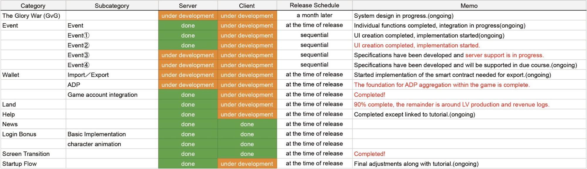 As a result, the remaining items that need to be completed before release have been narrowed down to the following.