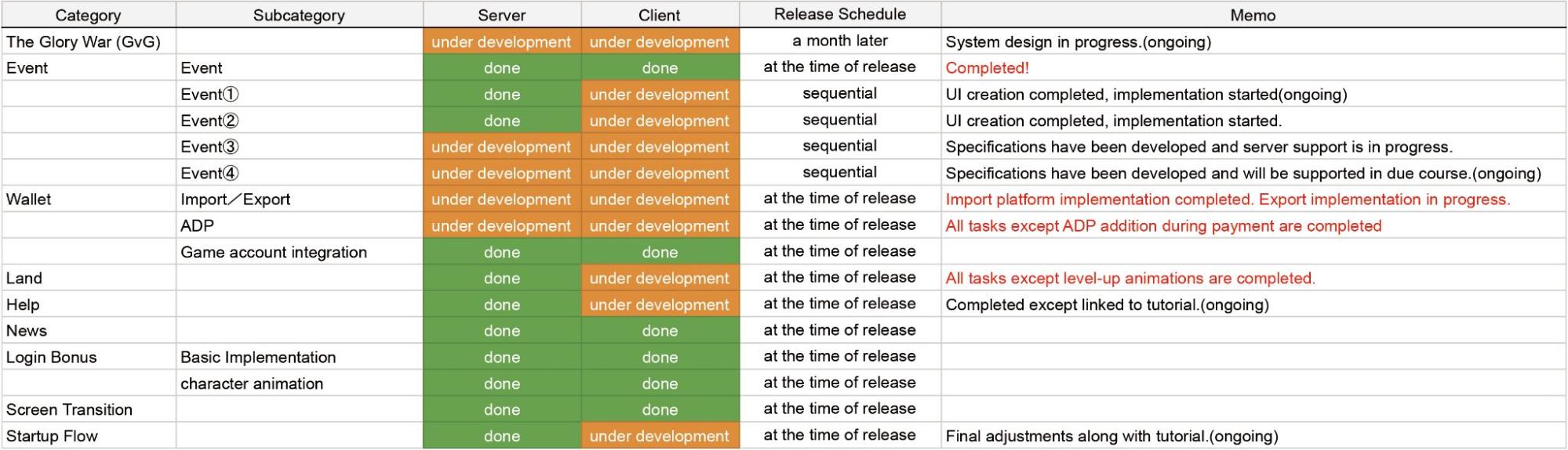 Last week, we completed the foundational event implementation. As for the Glory War, it is still under 'system design.' I will explain the current situation in the next section.