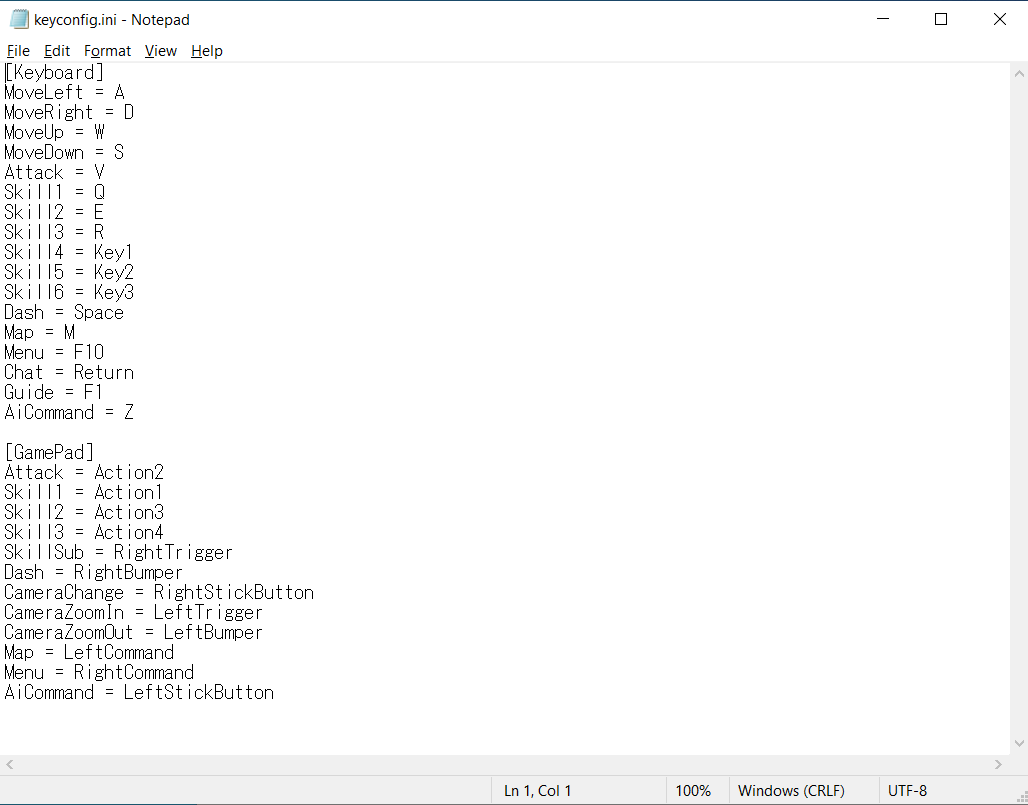 *The settings in keyconfig.ini are temporary. A user interface for input configuration will be implemented in the game soon, so please stay tuned.